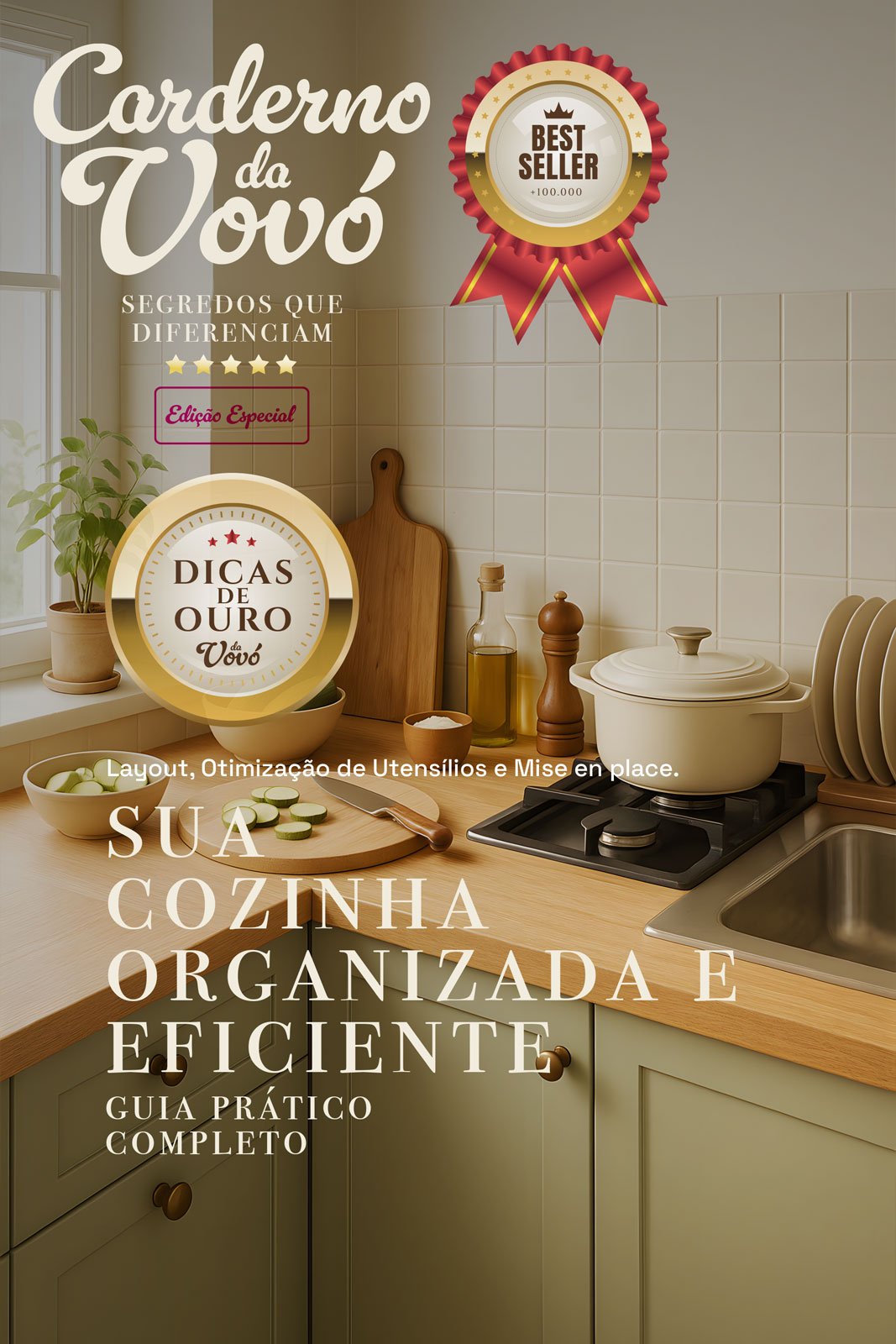 "Cozinha bagunçada não combina com produção de sucesso. Vou te ensinar como organizar seu espaço pra trabalhar mais rápido, com mais qualidade e sem perder o capricho."