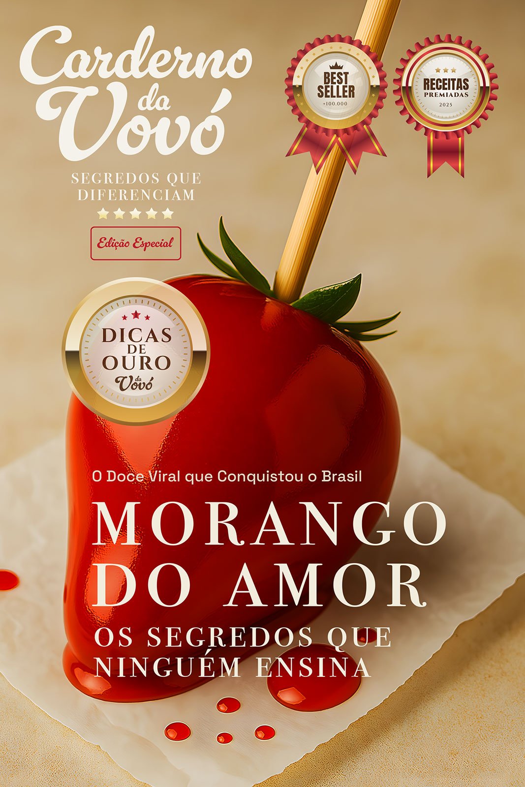 "Ah, meu bem, esse doce é a febre do momento. Tem gente faturando mais de três mil reais num fim de semana só vendendo morango do amor. Vou te ensinar o jeito que deixa ele lindo e irresistível, pra você também vender tudo rapidinho."